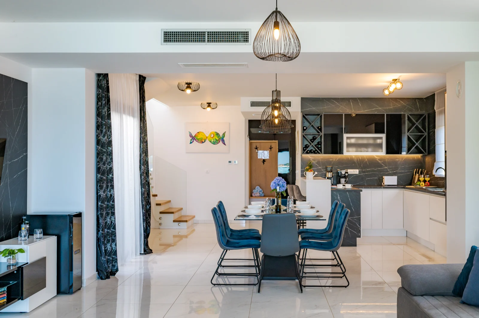 Das Haus befindet sich im Ort Zaboric, der Ort ist ca 8 KM von Sibenik entfernt. Im Ort sind gemütlich Cafes und Restaurants vorhanden, auch Einkaufmöglichkeiten sind fußläufig erreichbar. Lassen Sie sich von dem Komfort überraschen.