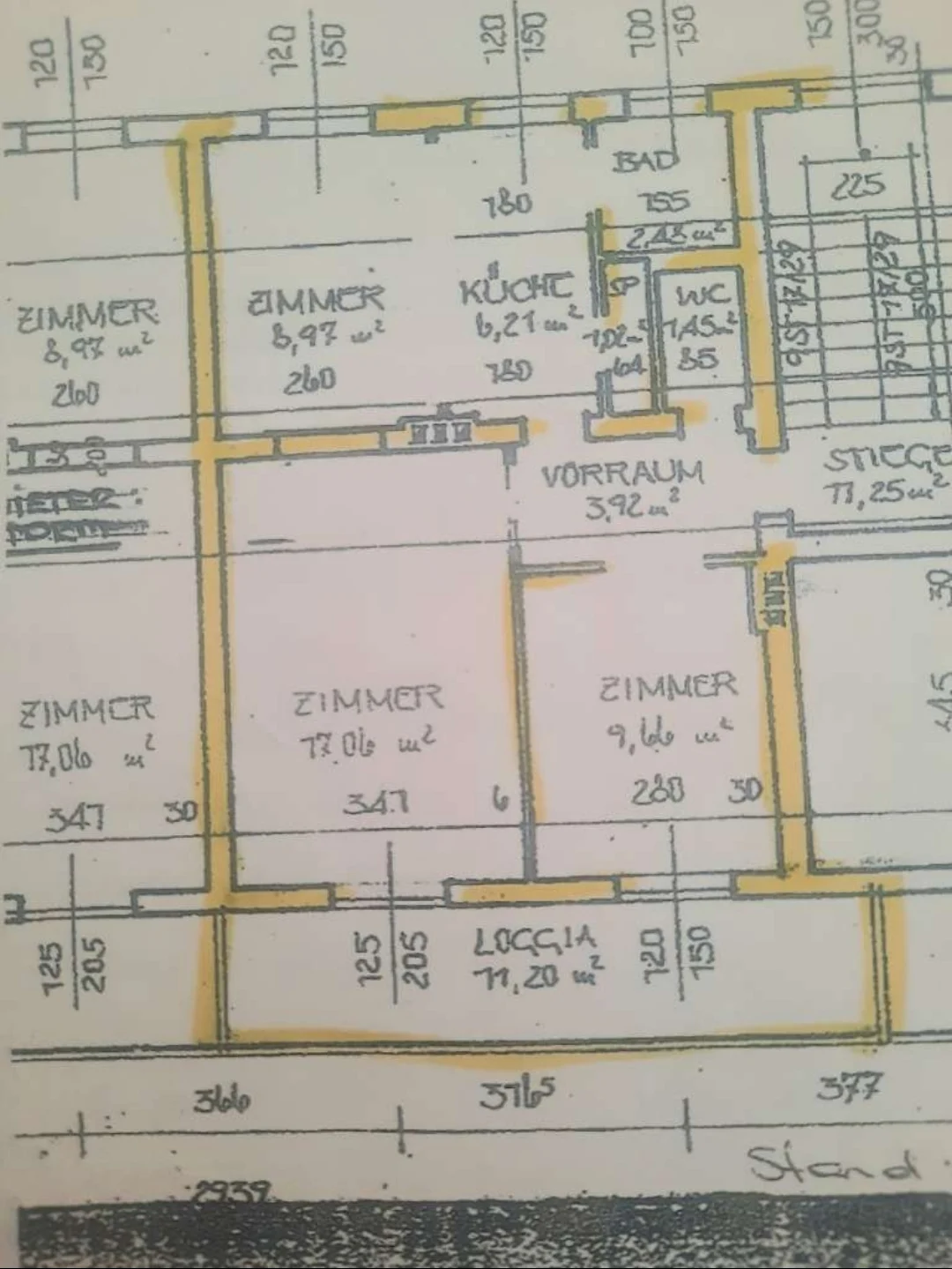 Die Raumaufteilung ist ideal: Eine gut geschnittene Wohnküche mit Platz für einen Esstisch bildet den Mittelpunkt der Wohnung. Dazu kommen zwei Zimmer, von denen eines als Schlafzimmer und das andere wahlweise als Wohn- oder Arbeitszimmer genutzt werden kann. Das Badezimmer ist mit einer Wanne ausgestattet, das WC ist separat, und eine praktische Speis ist direkt von der Küche aus begehbar. Über den Vorraum sind alle Bereiche gut erreichbar. Die nach Süden ausgerichtete Loggia ist vom größeren Zimmer aus zugänglich und sorgt für viel Licht.