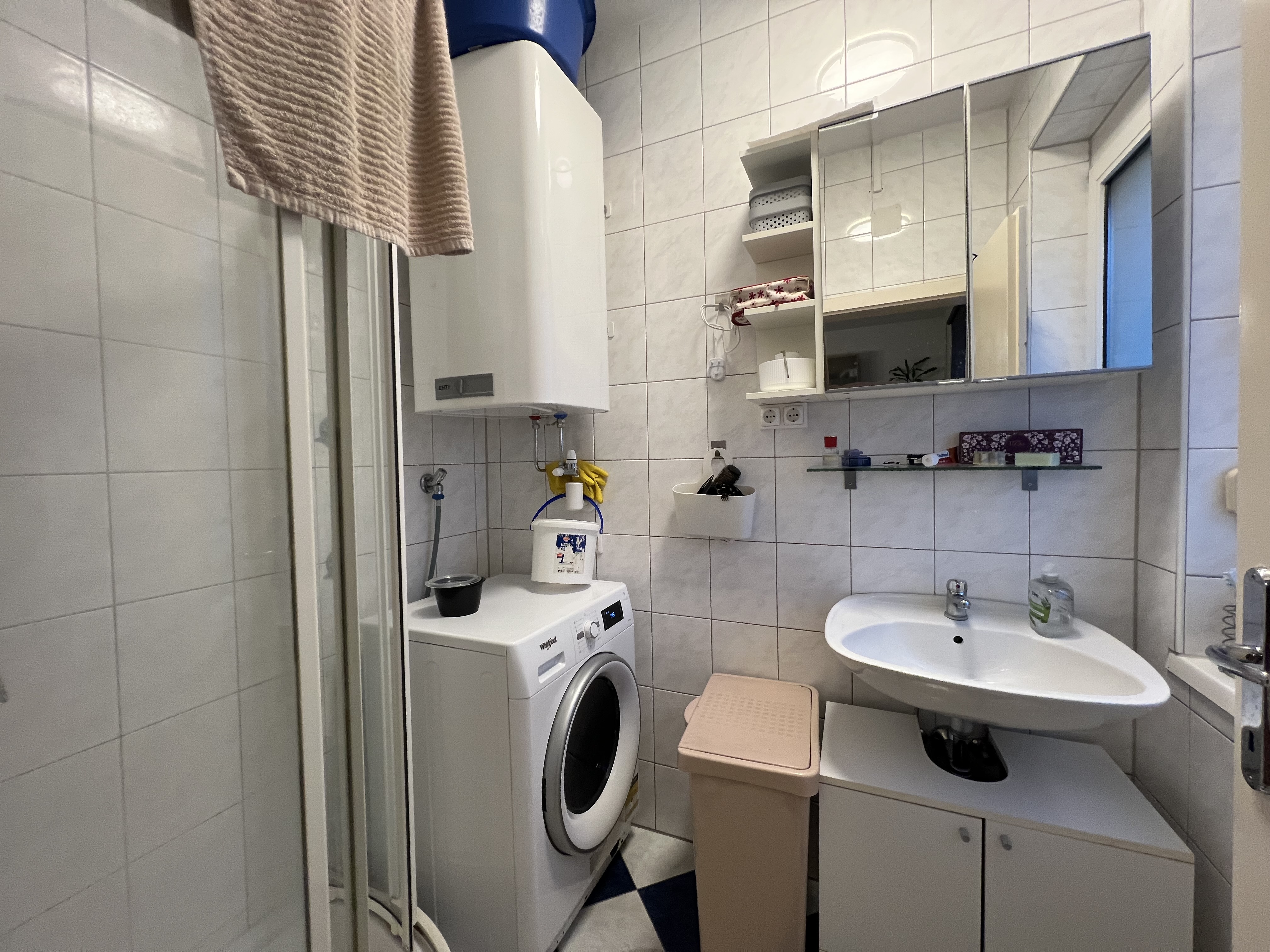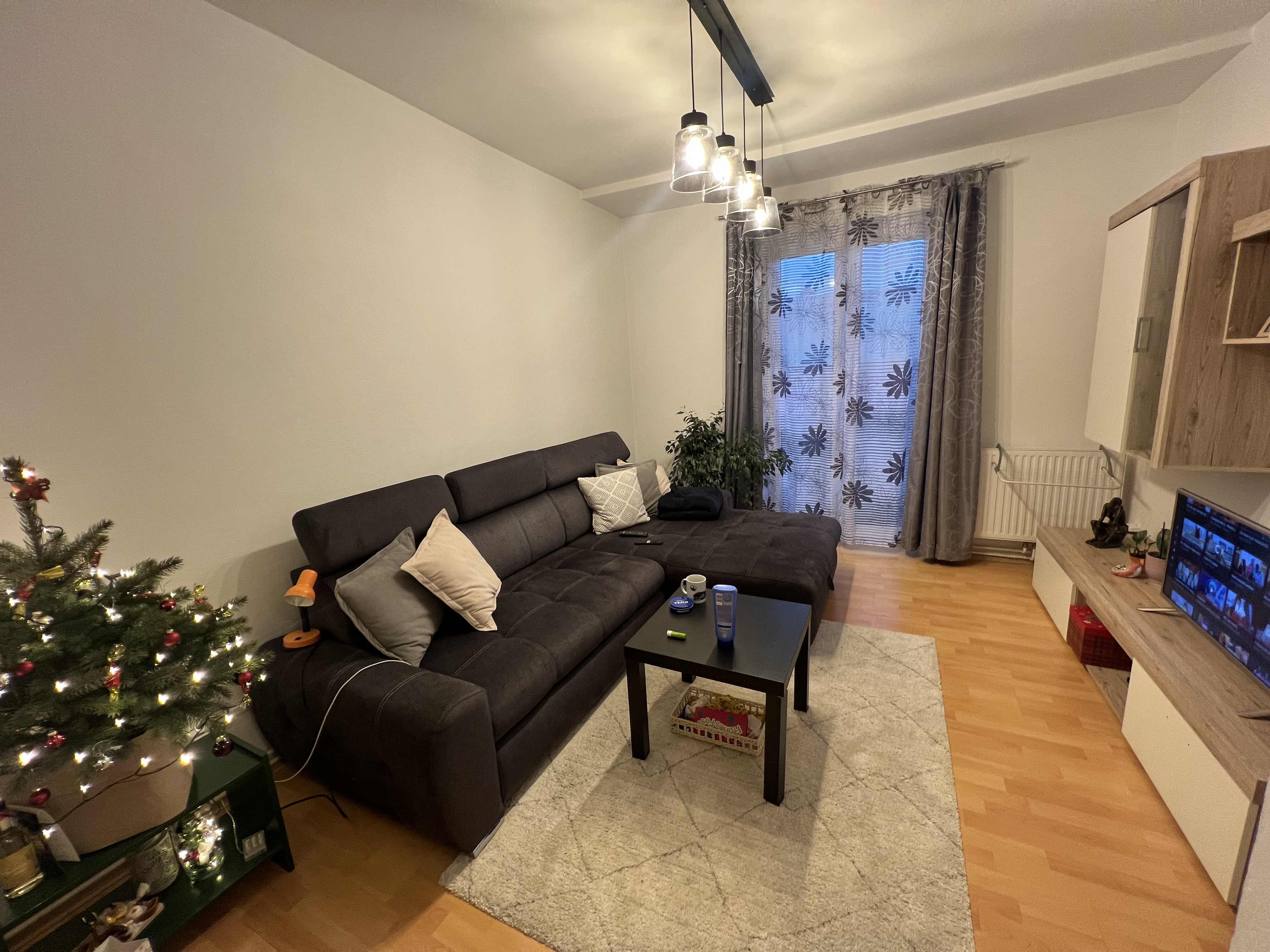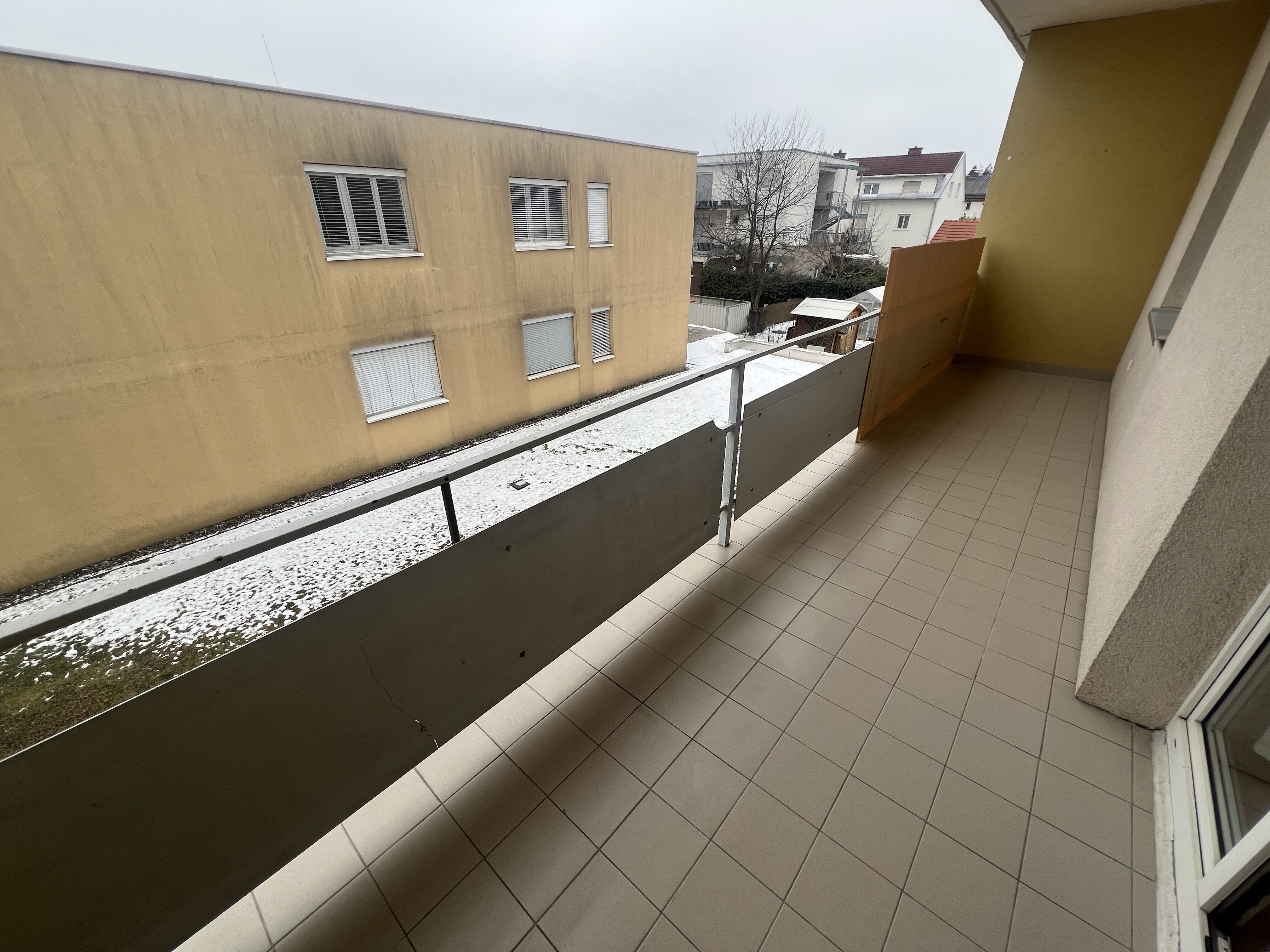Die Raumaufteilung ist ideal: eine gut geschnittene Wohnküche mit Platz für einen Esstisch bildet den Mittelpunkt der Wohnung. Dazu kommen zwei Zimmer, von denen eines als Schlafzimmer und das andere wahlweise als Wohn- oder Arbeitszimmer genutzt werden kann. Das Badezimmer ist mit einer Dusche ausgestattet, das WC ist separat, und eine praktische Speis ist direkt von der Küche aus begehbar. Über den Vorraum sind alle Bereiche gut erreichbar. Die nach Süden ausgerichtete Loggia ist vom größeren Zimmer aus zugänglich und sorgt für viel Licht. Ein Kellerabteil gehört zur Wohnung.